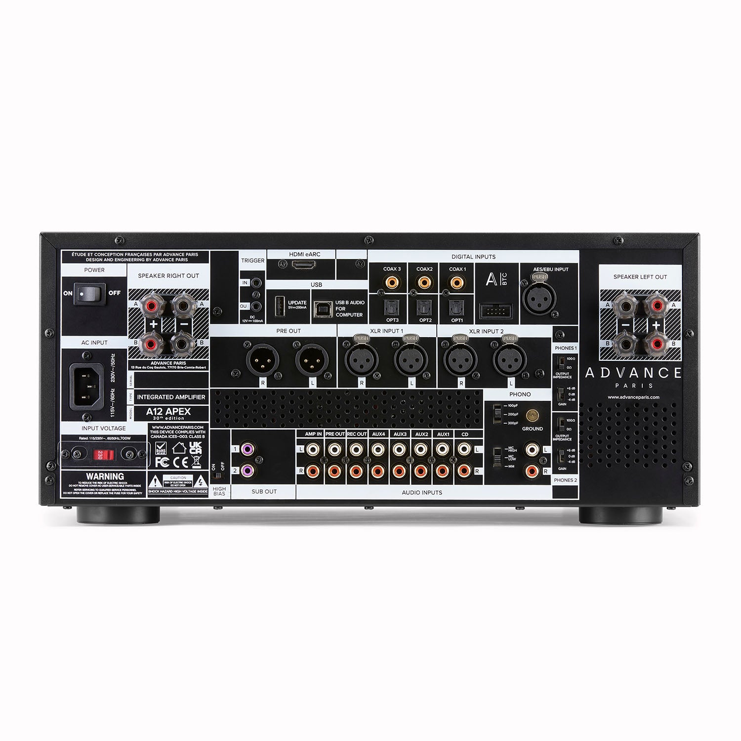 A12 APEX stands as the pinnacle of Advance Paris’ integrated amplifier design. It reflects the core philosophy of the APEX series, where amplification is conceived as the foundation of a complete musical system rather than a collection of separate functions. Designed for listeners who value cohesion, refined control, and musical integrity, it remains composed even during demanding passages or when driving complex loudspeaker loads.