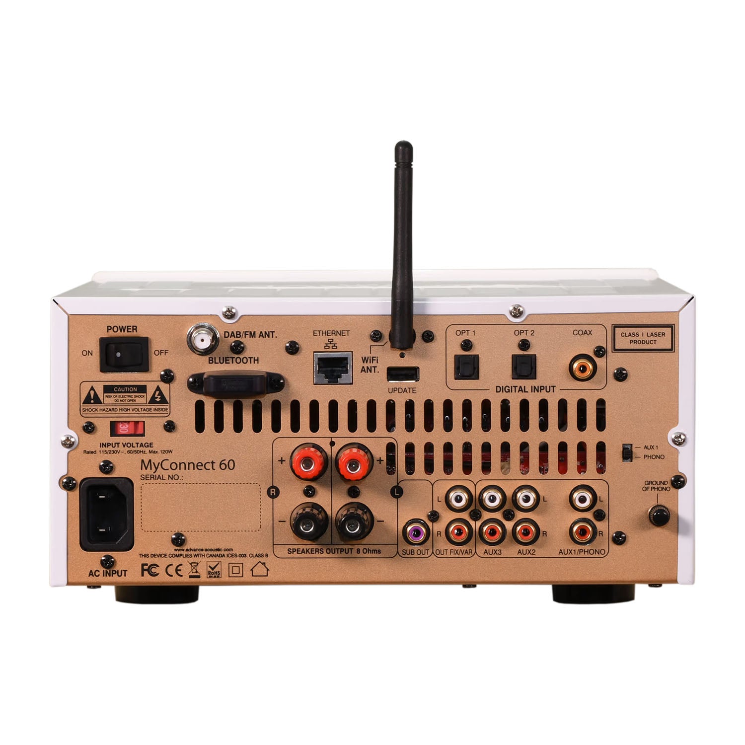MyConnect 60 is a compact integrated amplifier designed to make quality sound accessible and engaging. With a focus on musical balance and straightforward operation, it combines refined amplification with modern streaming capabilities in a clean, uncluttered form. A simple and elegant entry into the Advance Paris sound, created for relaxed listening and everyday enjoyment.